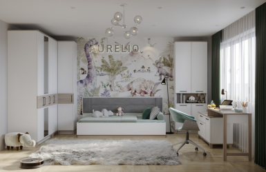 Создать уютную комнату для подростка - это отдельный вид искусства. Здесь важно всё, ведь это комната для своего хозяина и гостиная, и спальня, и место для релакса, и даже офис.Молодёжная AURELIO отлично справляется с реализацией всех этих функций. Белая мебель в детской подчёркивает яркие акцентные дополнения, аксессуары и декоративные мелочи, которыми любят оформлять свою комнату молодые люди. Тонкий рельефный профиль МДФ на фасадах добавляет интерьеру эстетики. Монохромность безупречно белой мебели разбавляют древесный декор в пастельных тонах Блэквуд сатиновый и элегантные чёрные металлические ручки.