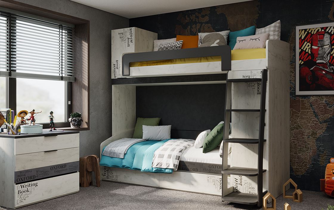 Шкаф комбинированный Оксфорд-2 Дуб крафт белый с рисунком
