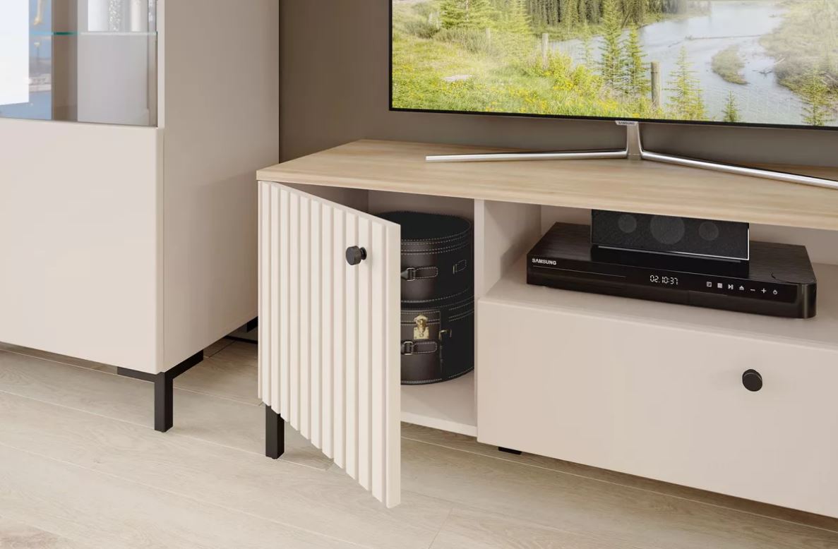Модульная коллекция мебели "Тоскана", выполненная в оригинальном дизайне, соответствует всем актуальным тенденциям. Нежный оттенок Кашемир, мягкое матовое покрытие Soft-Touch, элегантная фрезеровка фасадов и контрастные черные ручки создают гармоничный дизайн, а высокие металлические ножки добавляют лёгкости.