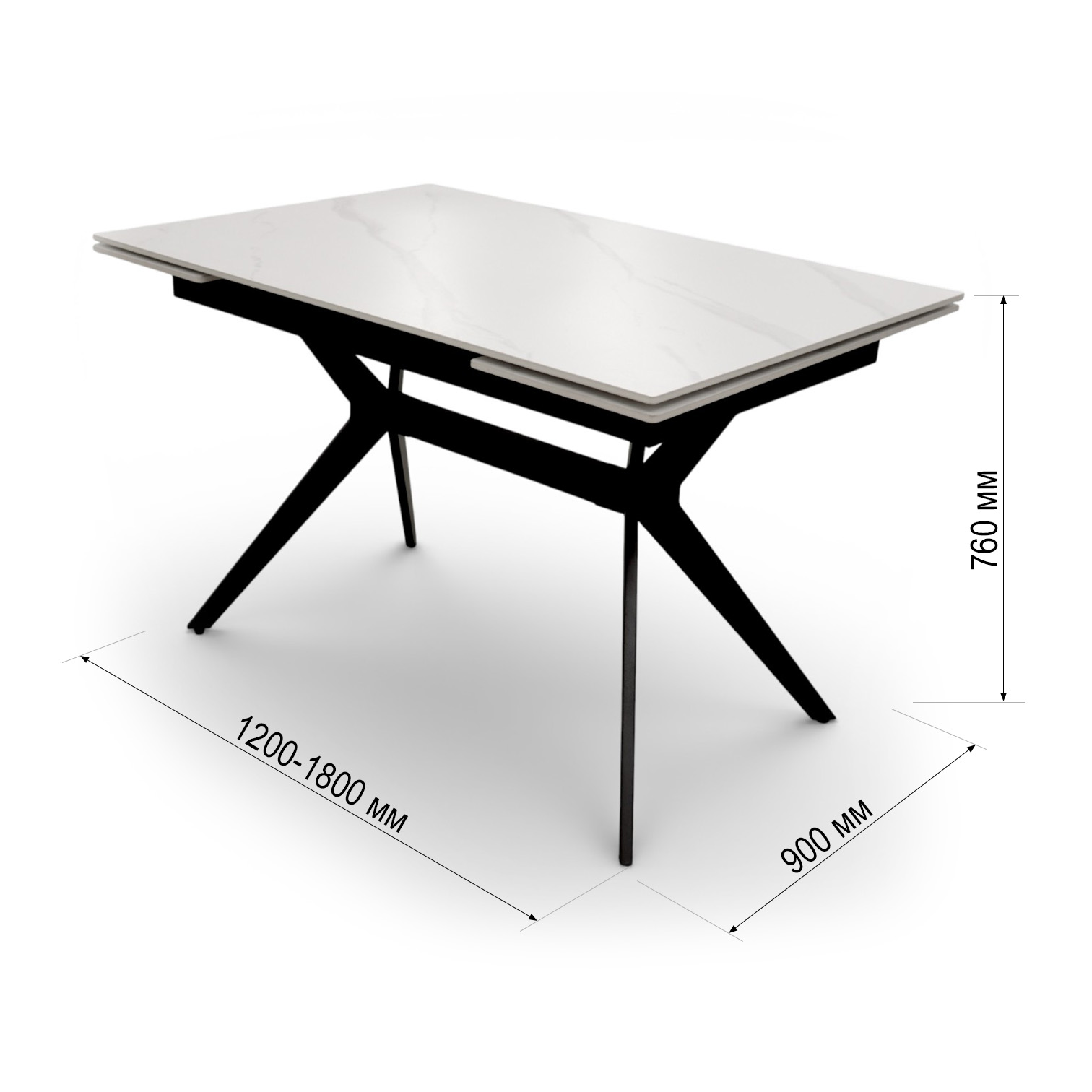 Стол DTM 0412 CS, 120+30+30*80*76,Керамика цвет мрамор белый Y15, ножки черные