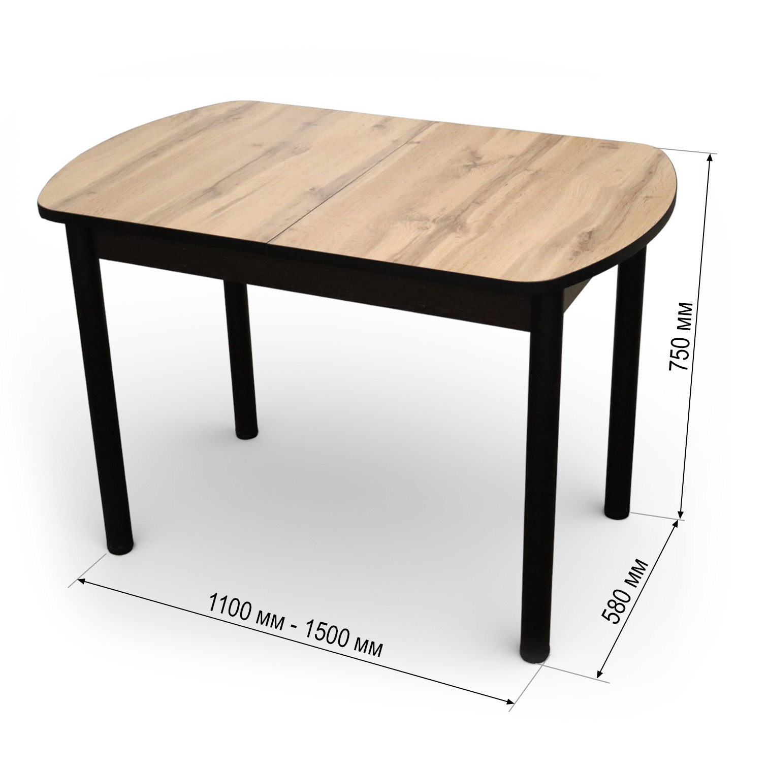 —Стол Фаворит 1100(+400)*700 Пластик Дуб Вотан,бабочка(B5)/ЛДСП Бодега темная+опоры(черн)