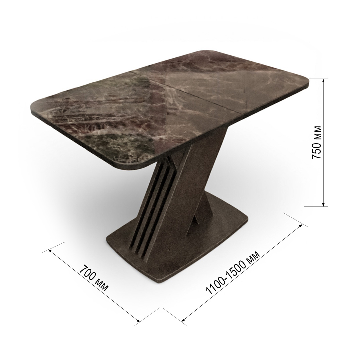 —Стол обеденный Неаполь 110(+40)*70 мрамор коричневый/ темная