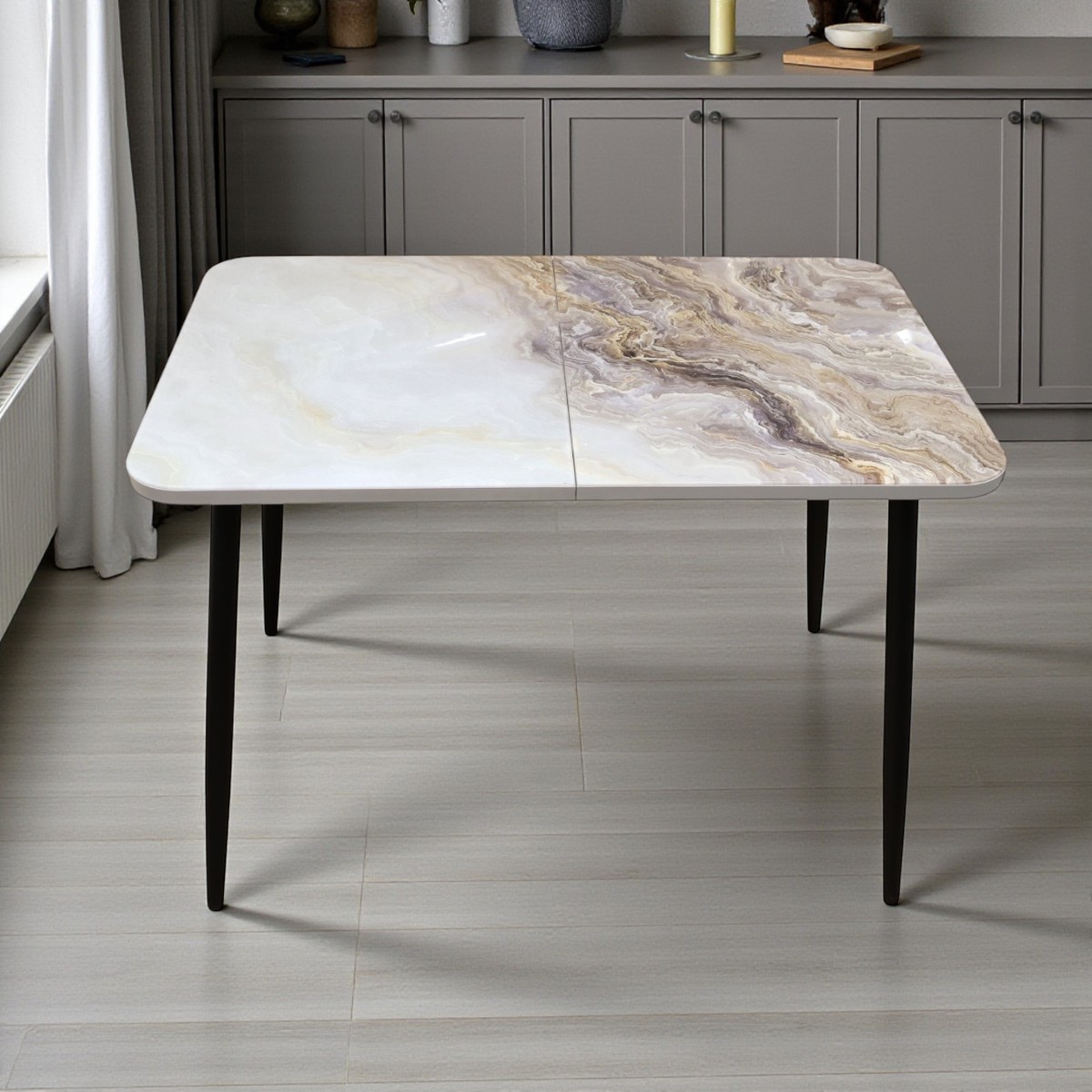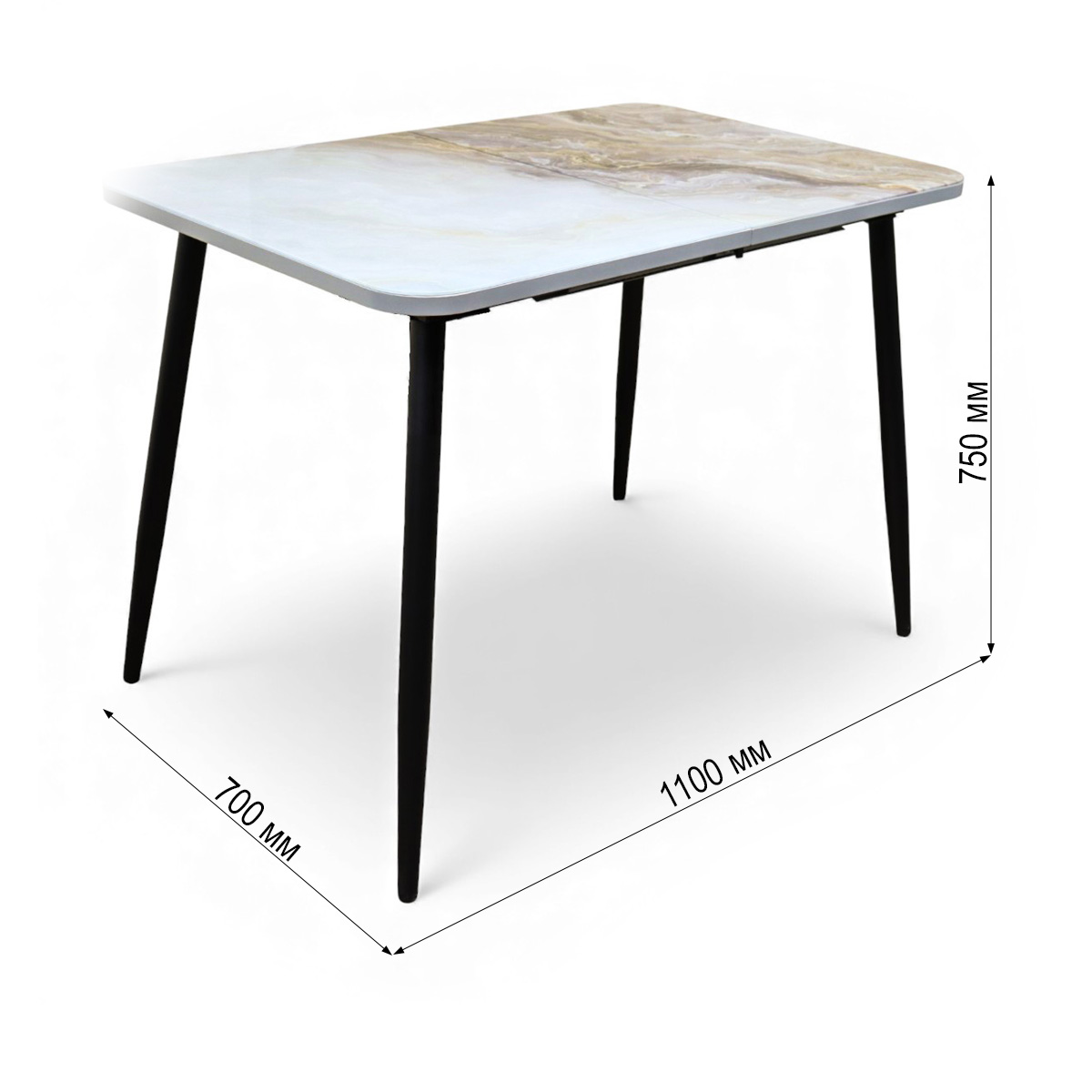 —Стол Турин 1100(+400)*700,бабочка, ф/печ Мрамор КР051, B1+металл черный