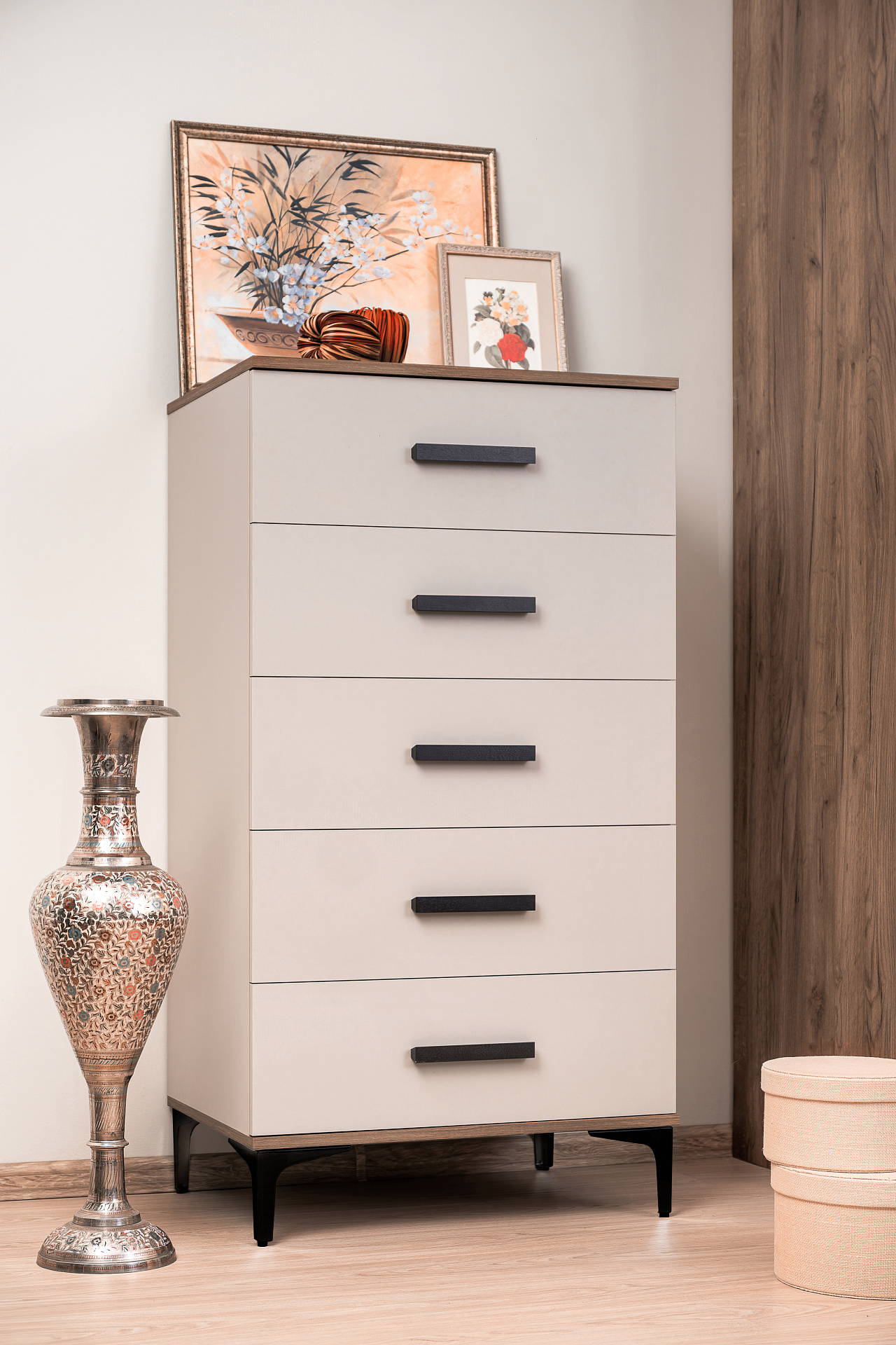 Высокий комод из коллекции «Кара» с 5 ящиками — элегантное решение для вашей спальни.